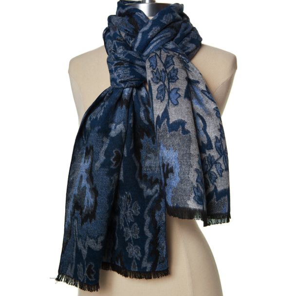 100% Cashmere Scarf by Rapti - Dark Blue Leaf Pattern
