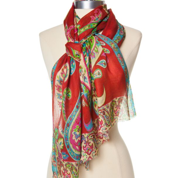 100% SILK Digital Print Scarf - Multicolor Floral Paisley by Rapti Fashion