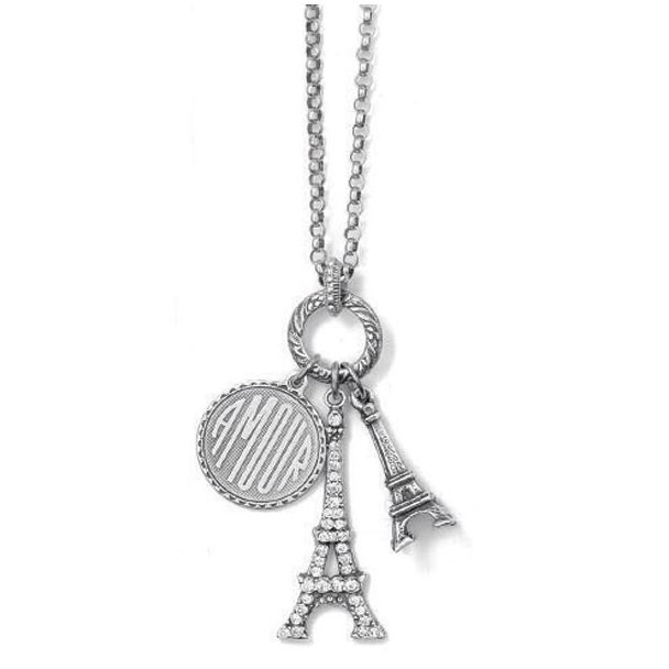 Amour Eiffel Tower Crystal Silver Charm Necklace