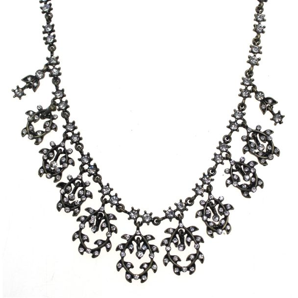 Antique Bronze Clear Crystal Flowers Necklace by Sweet Lola