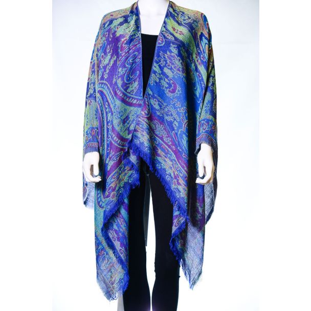 Beautiful! Silk & Pashmina Paisley Ruana Shawl by Rapti Fashion - Blue