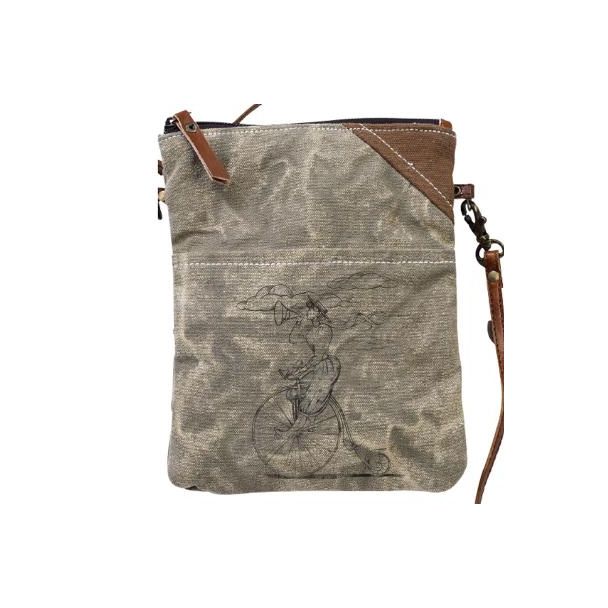 Bicycle/Bike Lady Leather & Canvas Passport Bag/Purse by Clea Ray