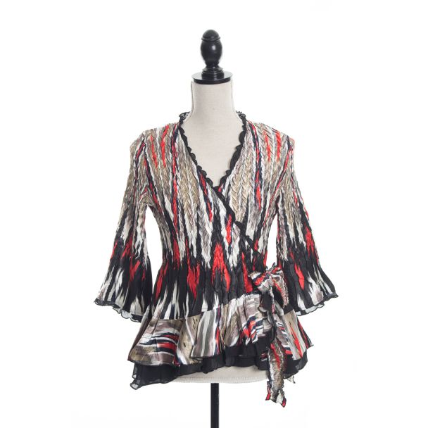 Black & Red Silky Crepe Wrap Top by Jerry T Fashion NY