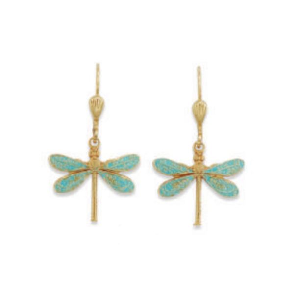 Catherine Popesco Blue French Enamel Dragonfly Gold Earrings