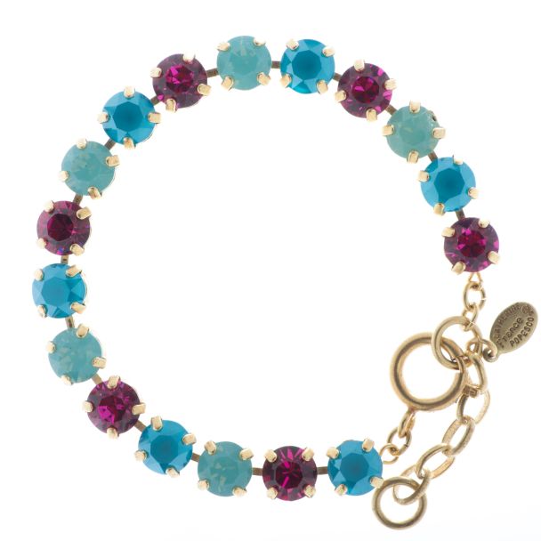 Fuchsia Pink, Azure and Pacific Opal Swarovski Crystals 14K Gold Plated or Sterling Silver Plated Setting Adjustable 7 1/2" - 9 1/4" Long, 1/4" Wide Crystals are 8mm in diameter La Vie Parisienne Jewelry by Catherine Popesco Made in France/USA Free Shipping!!!