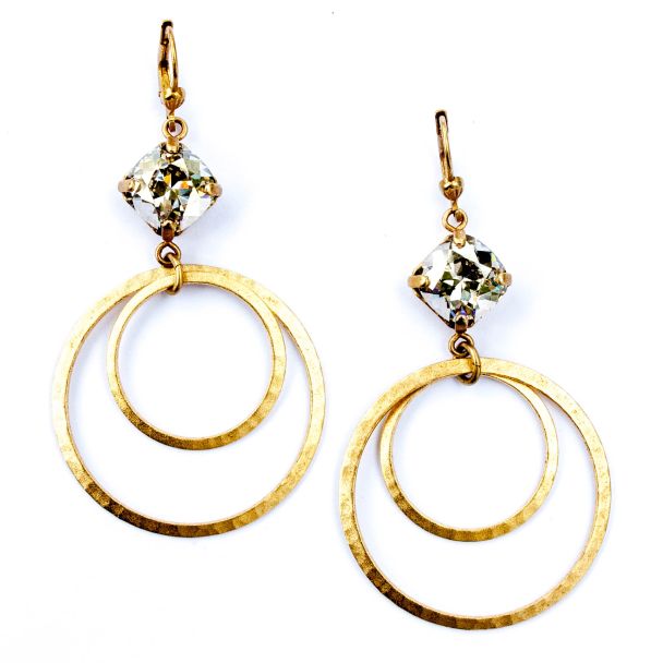 Catherine Popesco Double Hoop Shade Crystal Earrings in Gold