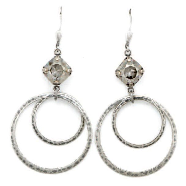 Catherine Popesco Double Hoop Shade Crystal Earrings in Silver