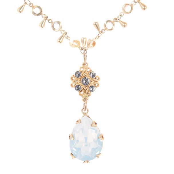 Catherine Popesco Fancy Crystal Teardrop Pendant Necklace - White Opal