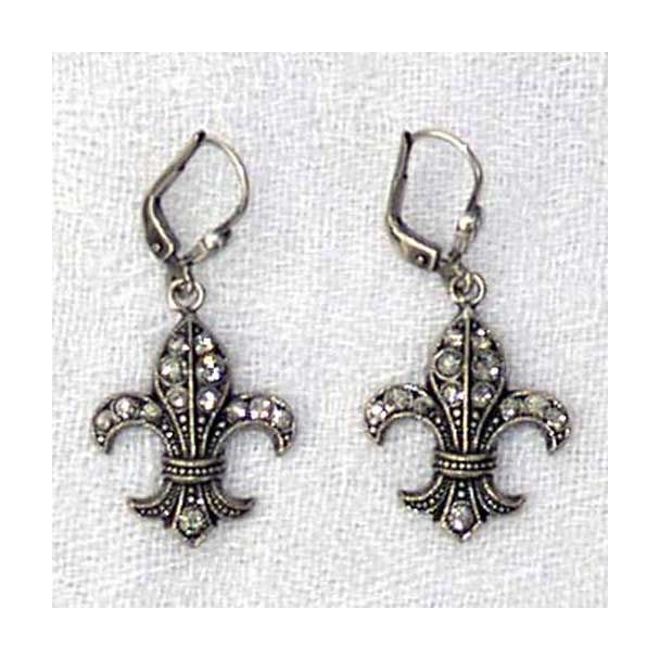 Catherine Popesco Fleur-de-lis Crystal Silver Earrings