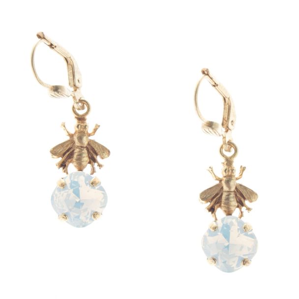 Catherine Popesco Gold Bee with Crystal Earrings - White & Pacific Opal