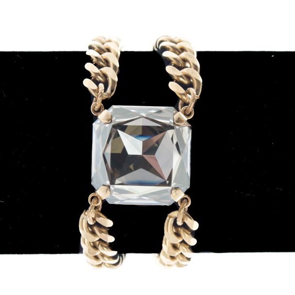 Catherine Popesco Gold Double Chain Large Square Shade Crystal Bracelet