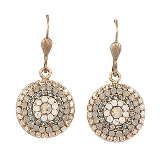 Catherine Popesco Gold Round Pave Champagne & Opal Crystal Earrings