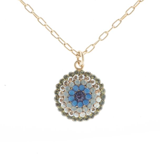 Catherine Popesco Gold Round Pave Crystal Necklace - Sky Blue & Olivine