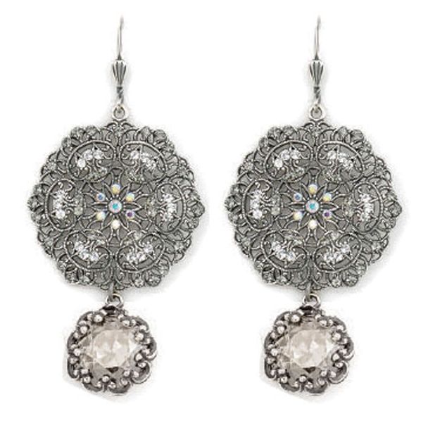 Catherine Popesco Lacy Crystal and Silver Round Earrings with Drop