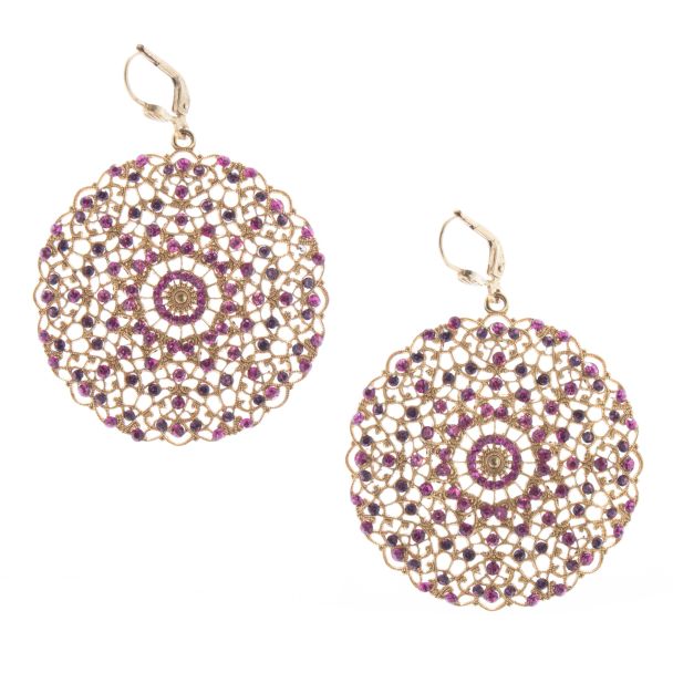 Catherine Popesco Lacy Medallion Filigree Fuchsia Pink Crystal Earrings