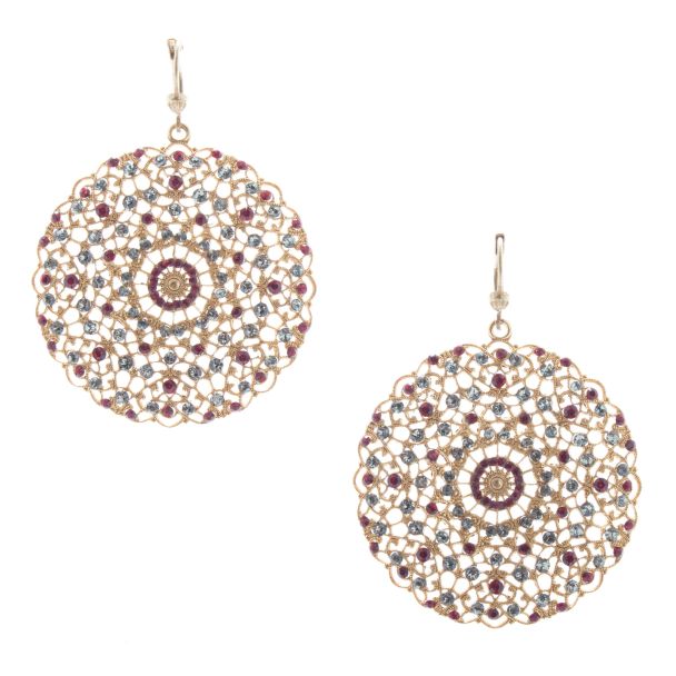Catherine Popesco Lacy Medallion Filigree Red Siam Crystal Earrings