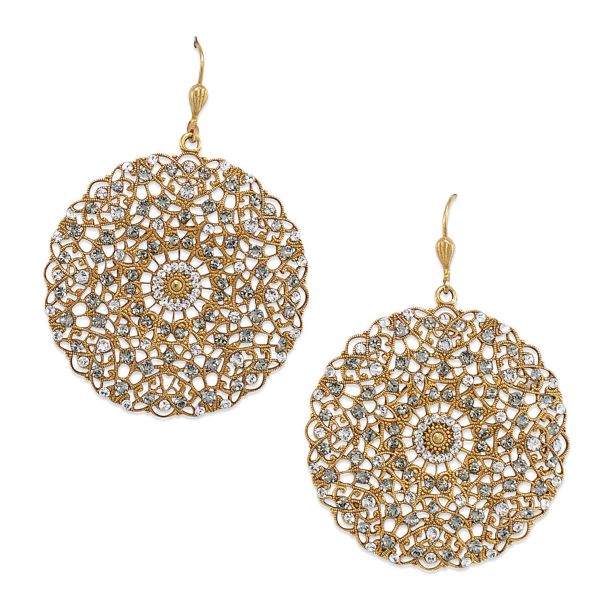 Catherine Popesco Large Lacy Crystal and Gold Round Earrings