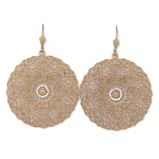 Catherine Popesco Large Lacy Filigree Gold Medallion Earrings