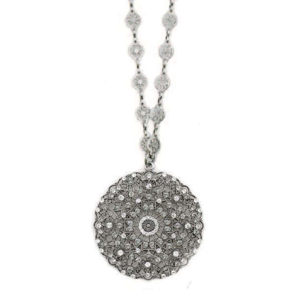 Catherine Popesco Large Lacy Medallion Silver Crystal Necklace - Assorted colors