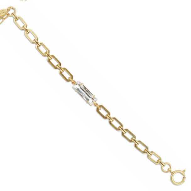 Catherine Popesco Large Rectangle Baguette Clear Crystal Gold Bracelet