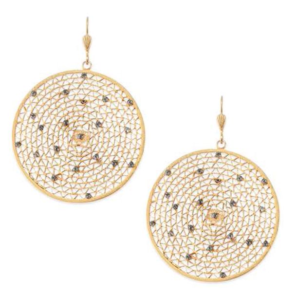 Catherine Popesco Large Round Crystal Filigree Mesh Pendant Earrings