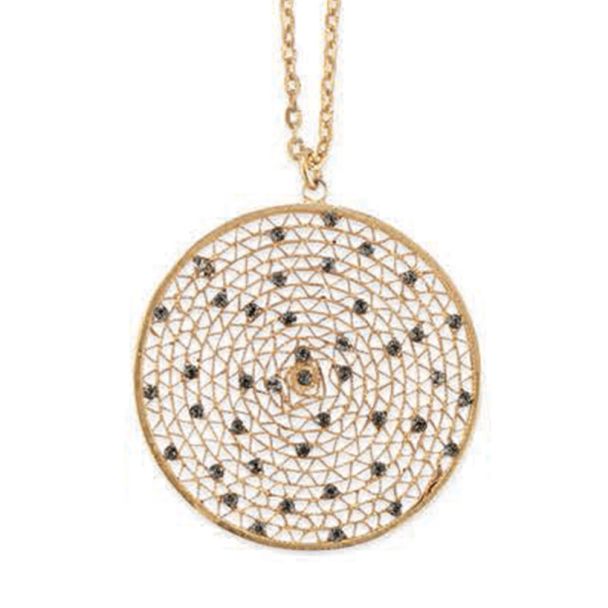 Catherine Popesco Large Round Crystal Filigree Mesh Pendant Necklace