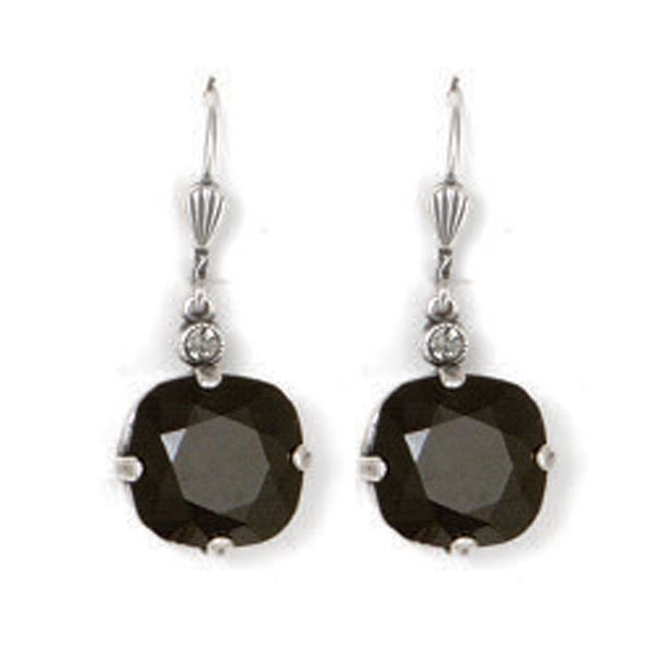 Catherine Popesco Large Stone Crystal Earrings - Jet Black and Silver