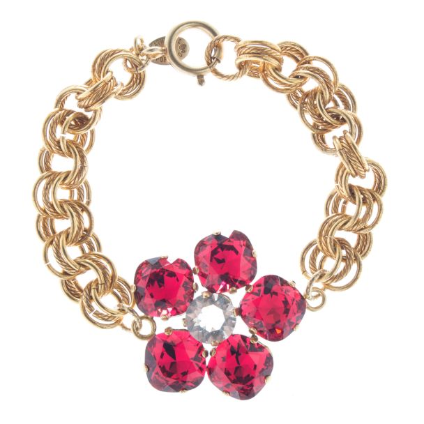 Catherine Popesco Large Stone Crystal Flower Bracelet - Scarlet Red