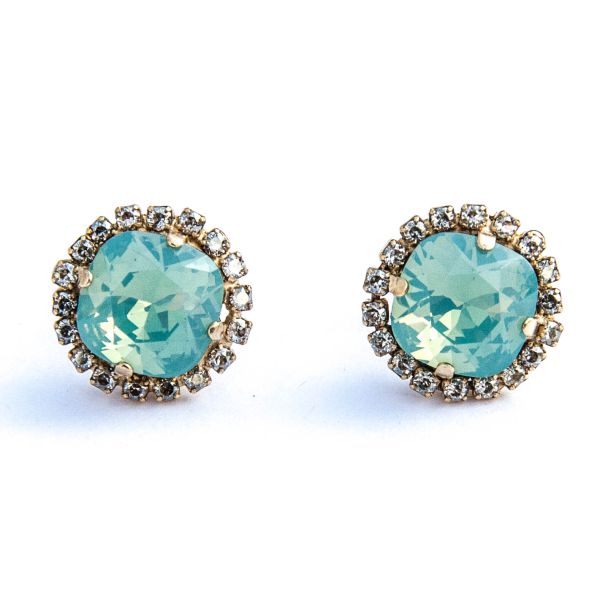 Catherine Popesco Large Stone Earrings with Small Crystals - Pacific Opal and Gold Post