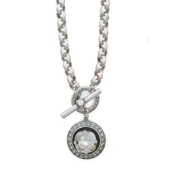Catherine Popesco Large Stone in Round Crystal Frame Necklace - Assorted Colors