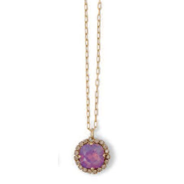 Catherine Popesco Large Stone Necklace With Crystals - Lavender and Gold