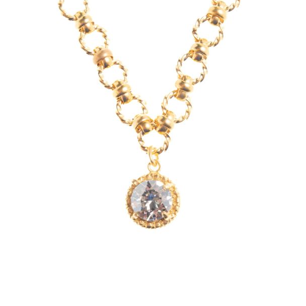 Catherine Popesco Round Chain Gold Crystal Pendant Necklace