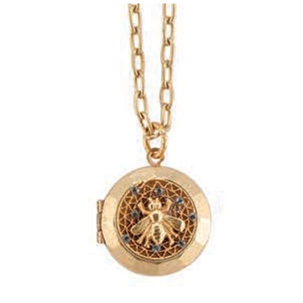 Catherine Popesco Round Crystal Filigree Mesh Bee Locket Necklace