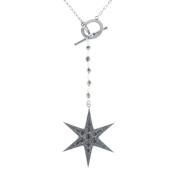 Catherine Popesco Silver Crystal Drop Star Pendant Necklace with Toggle