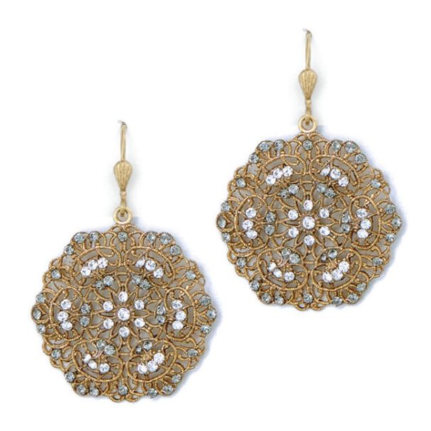 Catherine Popesco Small Lacy Crystal and Gold Round Earrings