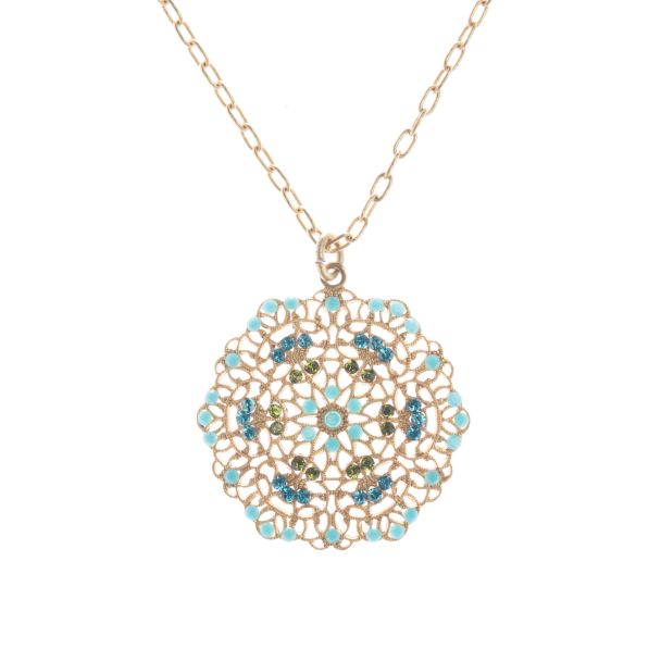 Catherine Popesco Small Lacy Medallion Gold Crystal Necklace - Turquoise
