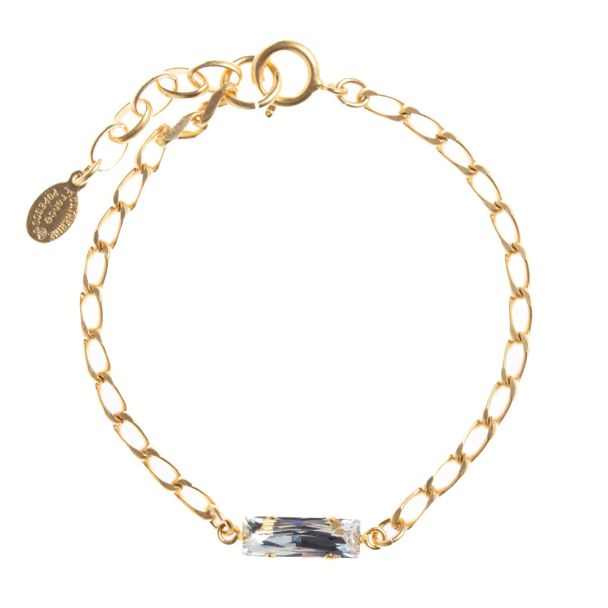 Catherine Popesco Small Rectangle Baguette Clear Crystal Gold Bracelet