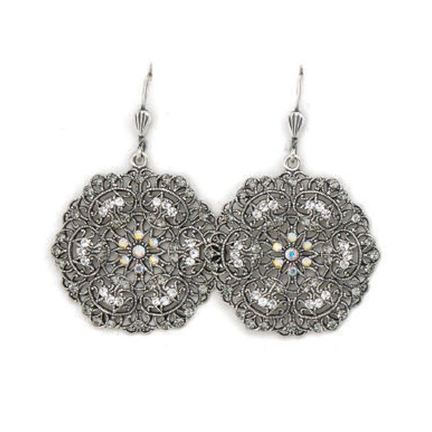 Catherine Popesco Small Round Lacy Crystal Earrings - Silver