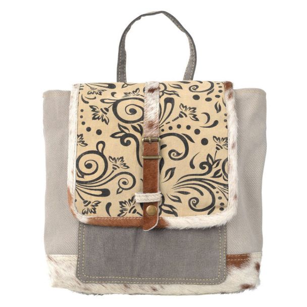Cowhide Fur Trim Small Backpack Bag/Purse by Clea Ray Leather & Canvas