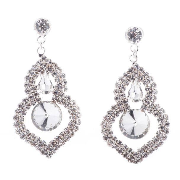 Jubilee Fancy Rhinestone Diamond Crystal Rivoli Drop Earrings - Silver