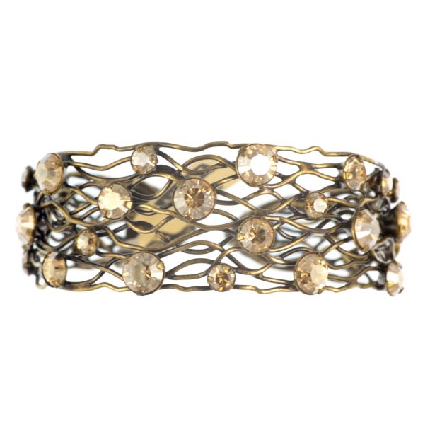 Konplott Cages Golden Shadow Crystal Antique Brass Narrow Cuff Bangle Bracelet