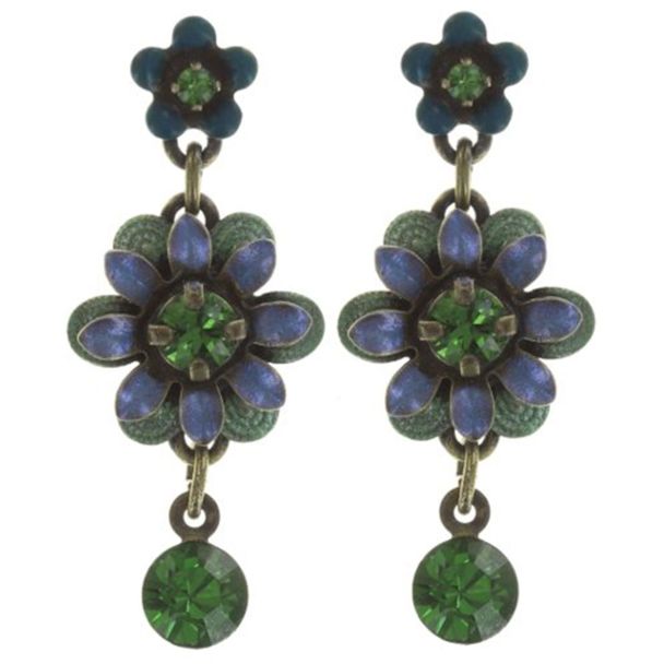 Konplott Jewelry - Mille Fleurs Blue/Green Crystal Flower Dangle Earrings