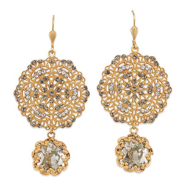 Catherine Popesco Lacy Medallion Filligree Crystal Earrings with Drop