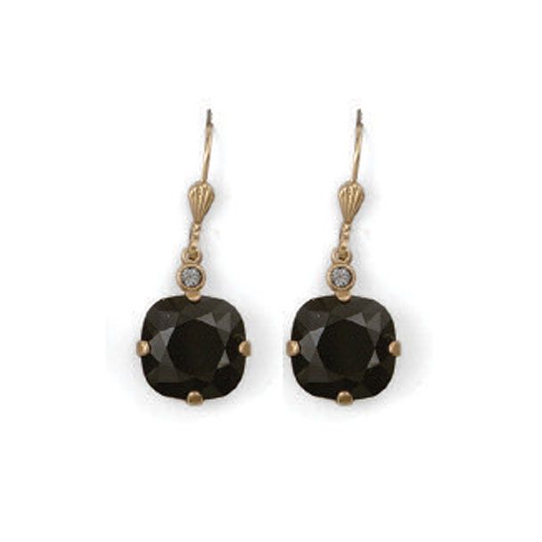 Large Stone Crystal Earrings - Jet Black and Gold