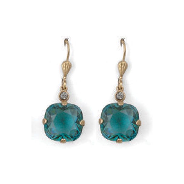 Catherine Popesco Large Stone Crystal Earrings - Teal and Gold