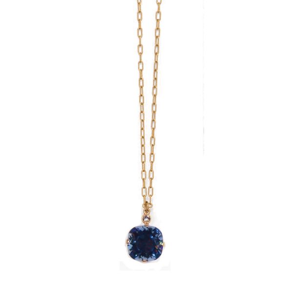 Midnight Blue Swarovski Crystal Sterline Silver Plated SettingChain - Adjustable 16" - 18"Pendant is 1/2" in diameter mfg: La Vie Parisienne Jewelry by Catherine Popesco