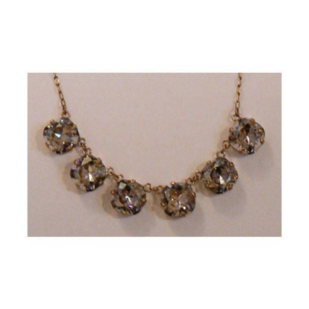 Shade Swarovski Crystals14 K Gold Plated SettingChain - Adjustable 16" - 18"Crystals are 1/2" in diameter\nThe necklace is also available in Ice, Teal, Pacific Opal, Marine, Midnight Blue, Champagne, Smoky Quartz, Khaki, Rosewater, Tanzanite, Lavender, Jet, Electric Blue, Stormy, Ocean Green, Celadon, and White Alabaster. mfg: La Vie Parisienne Jewelry by Catherine Popesco