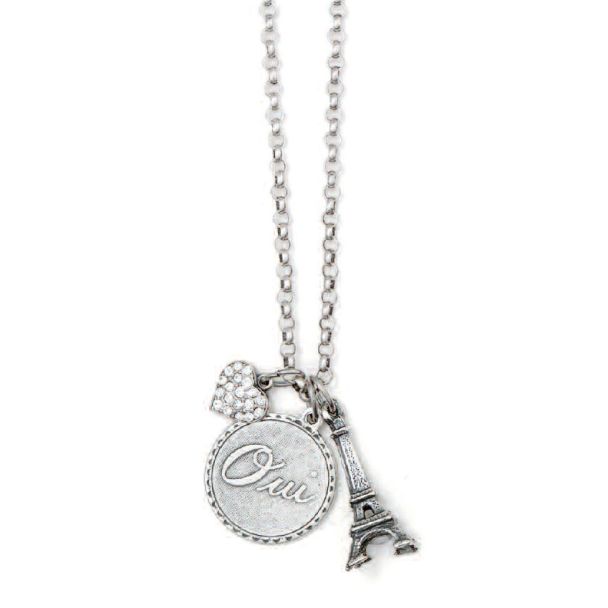 Catheine Popesco Oui Eiffel Tower Crystal Silver Charm Necklace