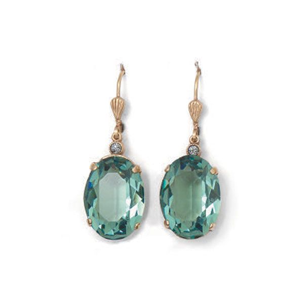Marine Swarovski Crystals14 K Gold Plated Setting1 3/8" long and 1/2" wide mfg: La Vie Parisienne Jewelry by Catherine Popesco
