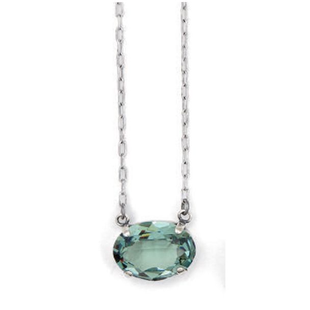Marine Swarovski CrystalSterling Silver Plated SettingChain - Adjustable 16" - 18"Crystal is 5/8" in diameterThe necklace is also available in Clear, Shade, Ice, Indian Sapphire, Lime, Champagne and Smoky Quartz. Please specify color desired in "Notes" box at end of checkout. mfg: La Vie Parisienne Jewelry by Catherine Popesco